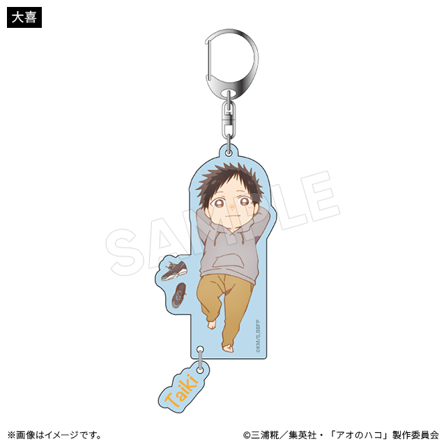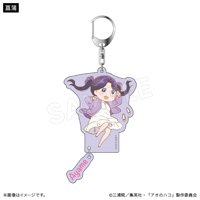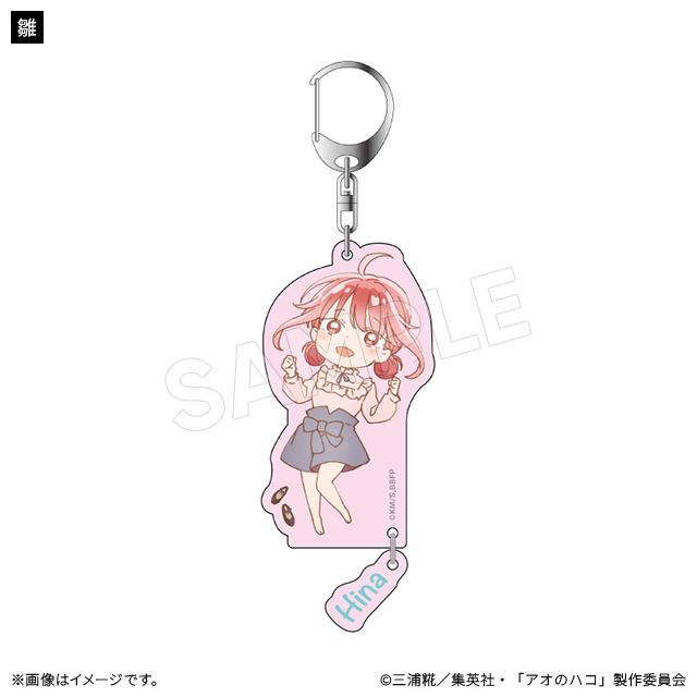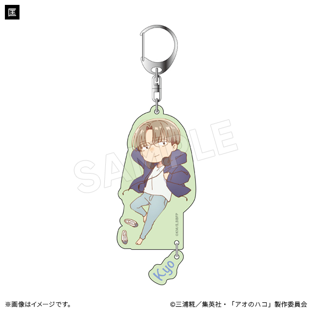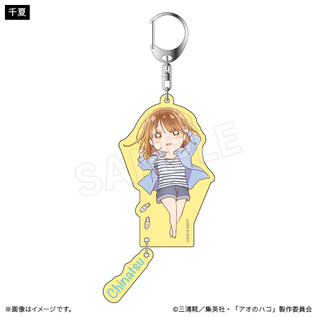 キャラクターデザイン・総作画監督の谷野美穂さんによる描き下ろしのかわいいミニキャライラストのキーホルダー。ゆらゆら揺れる名前のチャーム付き。