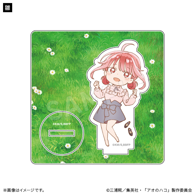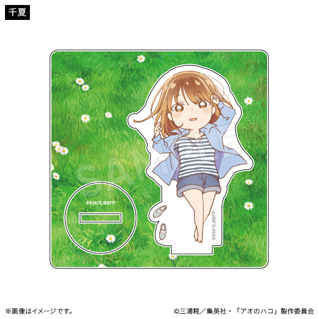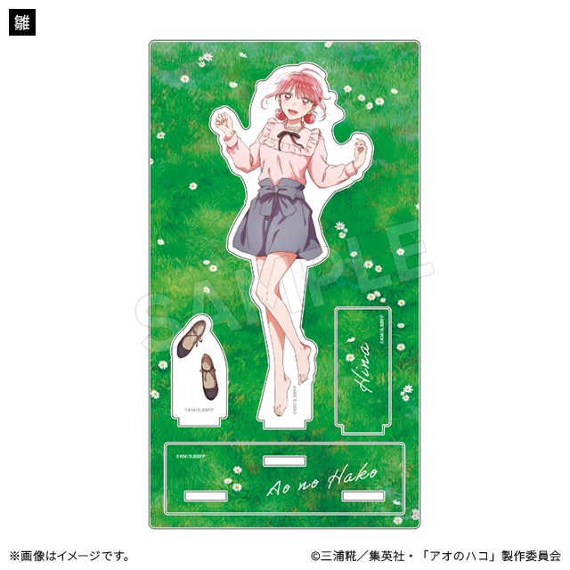爽やかな風と暖かな陽射しを感じる春の情景のアクリルスタンド。キャラクターデザイン・総作画監督の谷野美穂さんによる描き下ろしイラストです!。台座にはキャラの他、靴とネームプレートが差し込めます。別売りのミニキャラアクリルスタンドを差し込むことも出来て可愛さUP!