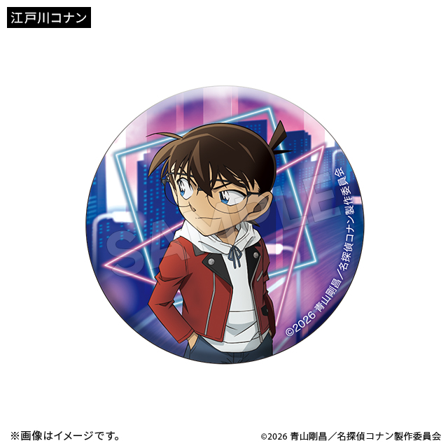 キラリと光るネオン風のデザインが印象的な缶バッジです。