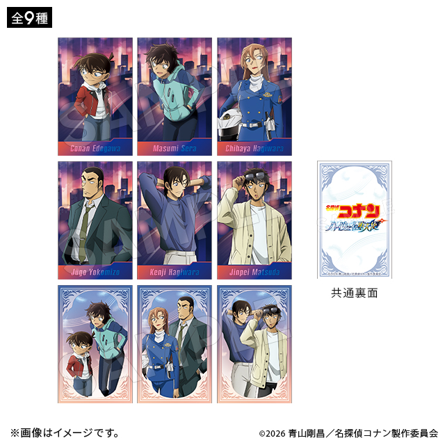 単体絵柄6種・セット絵柄3種の全9種です。1パック2枚入り。