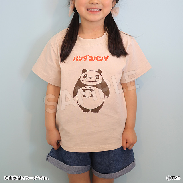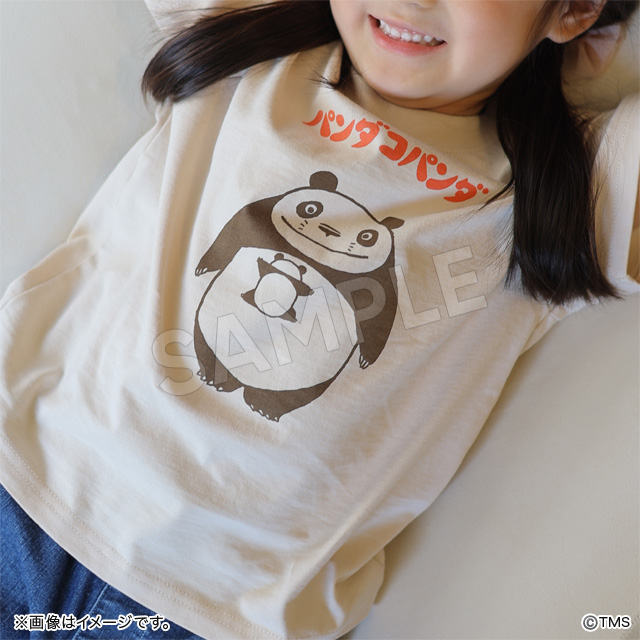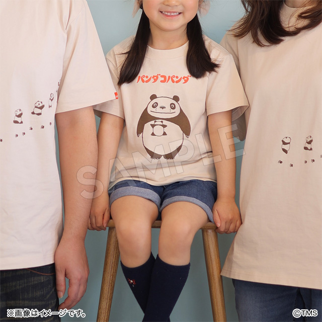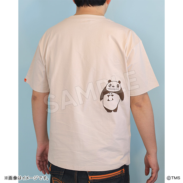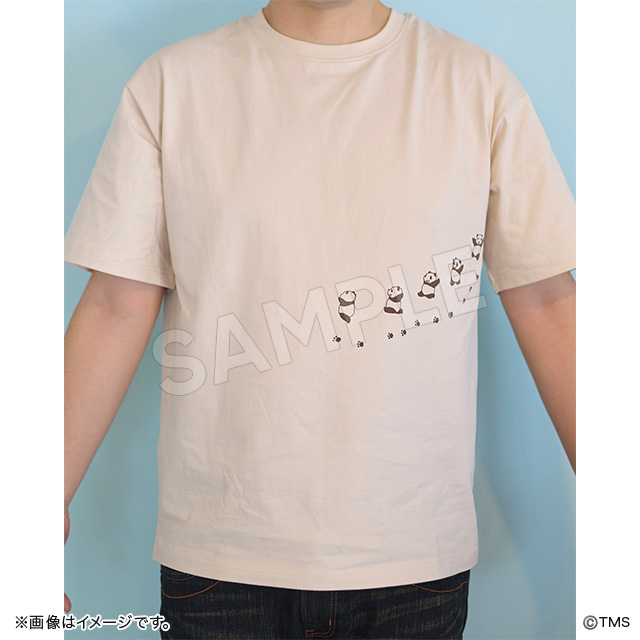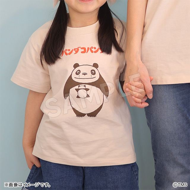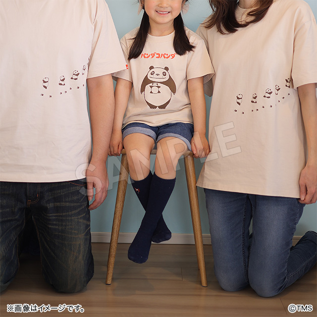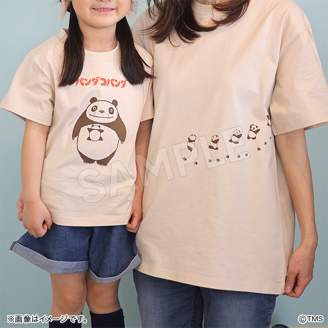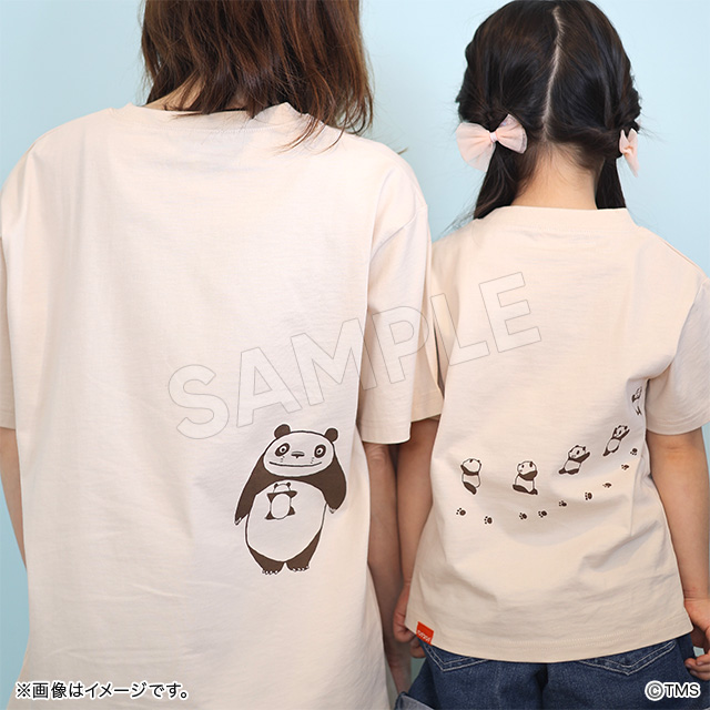 パンちゃんがぴょんとジャンプしてパパンダにだっこしてもらうまでを前後でかわいく表現した、おとな用Tシャツ。