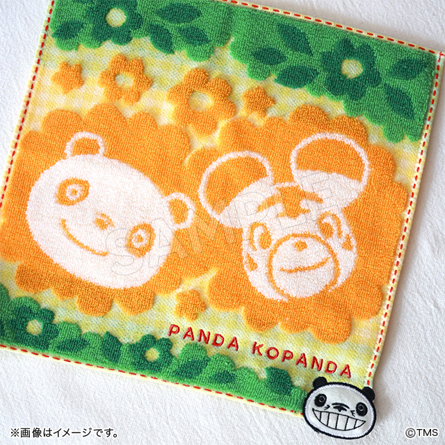 かわいい♥パンちゃんのお顔のアップリケがついた手触りのよいジャガード織ミニタオル。花畑と竹やぶの上に広がる青空にパパンダ型の雲が浮かんでいるデザインです。持ち歩きやすいサイズなのでバッグに入れて一緒におでかけしてくださいね。